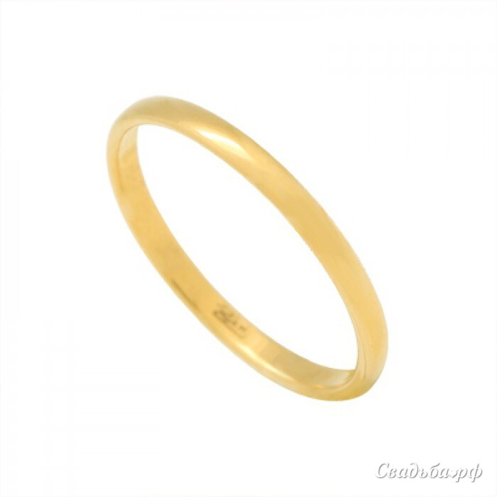Классическое тонкое обручальное кольцо из жёлтого золота. Идеально гладкая поверхность кольца эффектно отражает свет солнца или ламп и привлекает всеобщее внимание, недвусмысленно символизируя новый статус своего хозяина. Модель выглядит сдержанно и элегантно. Стоимость украшения зависит от варианта исполнения и размера кольца.