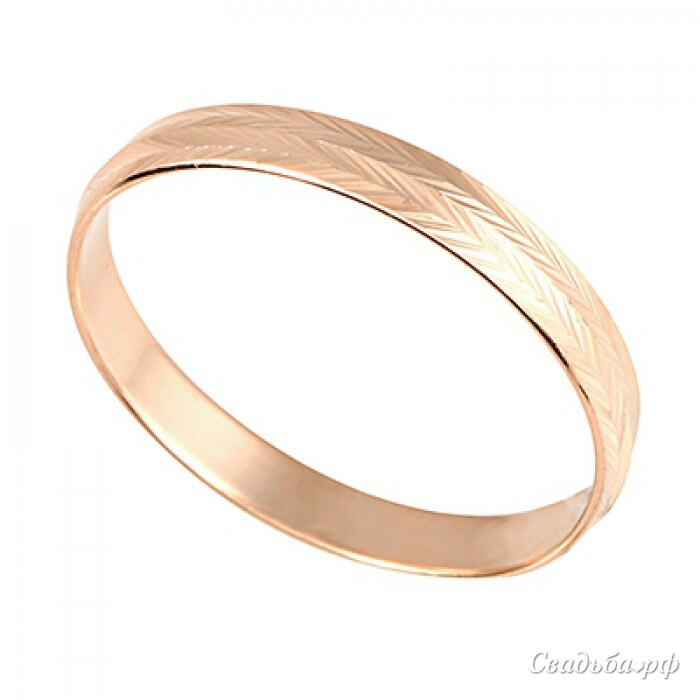 Оригинальное обручальное кольцо из красного золота выглядит очень стильно и элегантно. Внешняя поверхность кольца украшена многочисленными насечками, которые при попадании света начинают источать какое-то волшебное сияние. Кольцо блестит и переливается, радуя хозяина и всех окружающих. Стоимость украшения зависит от варианта исполнения и размера кольца.
