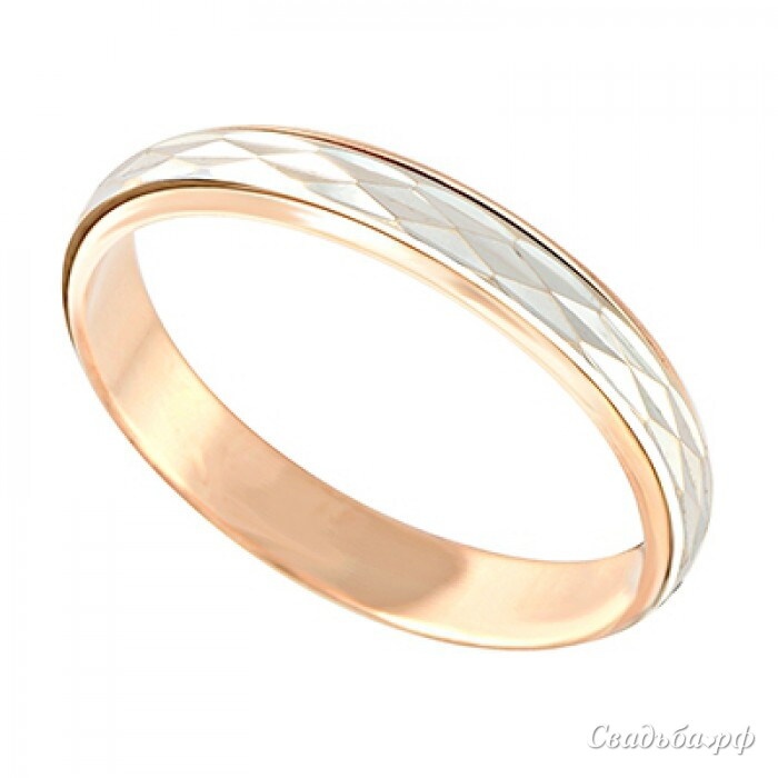 Потрясающее обручальное кольцо из белого и красного золота. Внутренний ободок модели выполнен из красного золота. Он имеет закруглённую форму, которая считается самой удобной в повседневной носке. Внешний ободок кольца выполнен из белого золота. Он немного уже, чем внутренняя часть, а его рельефная поверхность очень интересно отражает свет.