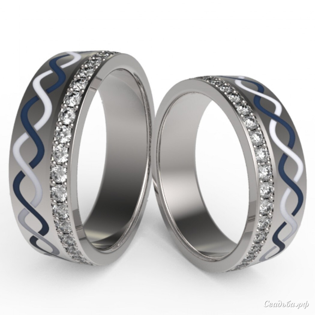 Стильные яркие кольца, выполненные из золота, 585 пробы. Изделие украшено эмалью и бриллиантами. Внутри возможно нанесение имени владельца.