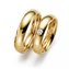 Классический пример парных обручальных колец. Оба украшения изготовлены из желтого золота высшей пробы. Мужской вариант гладкий и без декоративных элементов. Женский вариант кольца украшает один крупный бриллиант.