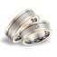 Очень необычные парные обручальные кольца. Эти ювелирные украшения изготовлены из комбинированного золота, белая часть которых является матовой. В женском варианте кольцо инкрустировано крупным бриллиантом.
