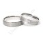 Парные матовые обручальные кольца, выполненные из белого золота высшей пробы. Кольца традиционной формы без фигурных вставок и гравировок, но их изюминка – это форма, у женского кольца основная часть как бы утоплена и слегка выпирающие края, у мужского — наоборот. Обручальное кольцо невесты украшает красивый бриллиант, расположенный в центре ювелирного изделия.