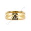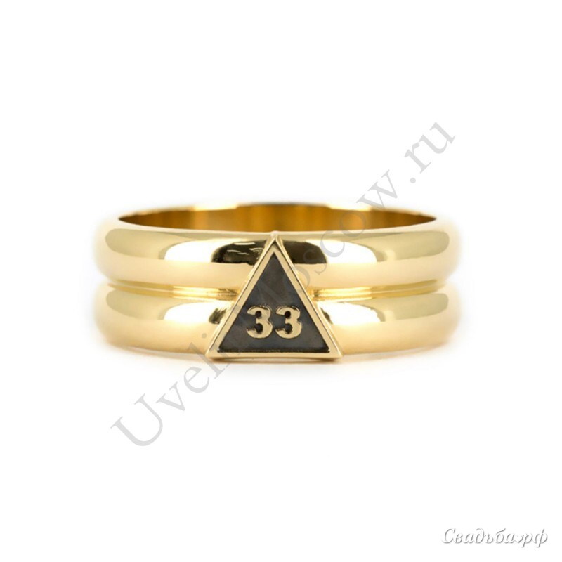 Если вы все еще не можете определиться с мужским обручальным кольцом, то рекомендуем вам данную модель. Обручальное кольцо из желтого золота высшей пробы и с серьезным «характером». Украшение двойное, в его центре располагается декоративный элемент в виде треугольника, где изображена цифра 33, которая символизирует возраст Христа. Цена указана за кольцо 19-го размера весом в 8,67 грамм.