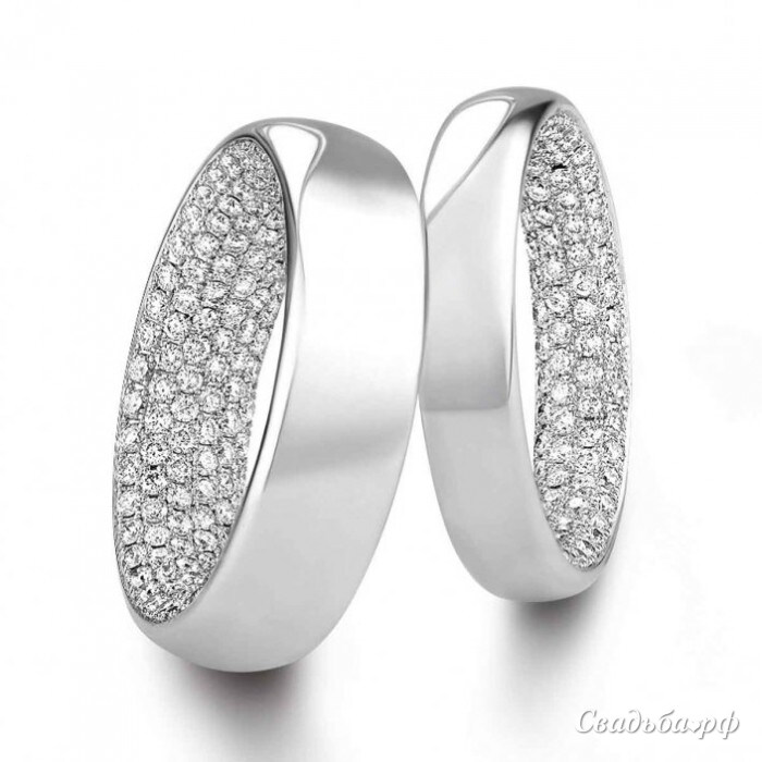 Поистине королевские обручальные кольца отечественного производства созданы для самых требовательных молодожёнов. Эти оригинальные украшения из белого золота помогут Вам избежать лишних взглядов на россыпь бриллиантов, ведь все камни расположены с внутренней стороны массивных ободков. Пусть эта роскошь останется Вашим маленьким секретом.
