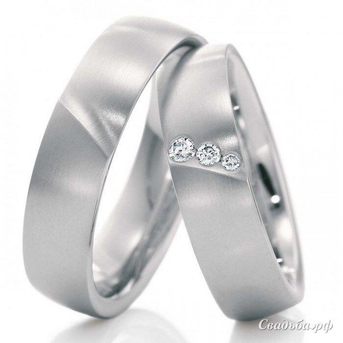 Массивные обручальные кольца из белого золота представлены лучшими ювелирами России. Эти колечки для жениха и невесты могут похвастаться классическим дизайном и современным исполнением. Мужская модель отличается лаконичностью форм. Женское колечко дополнено тремя чистейшими бриллиантами. Изделия гармонично сочетаются друг с другом.