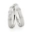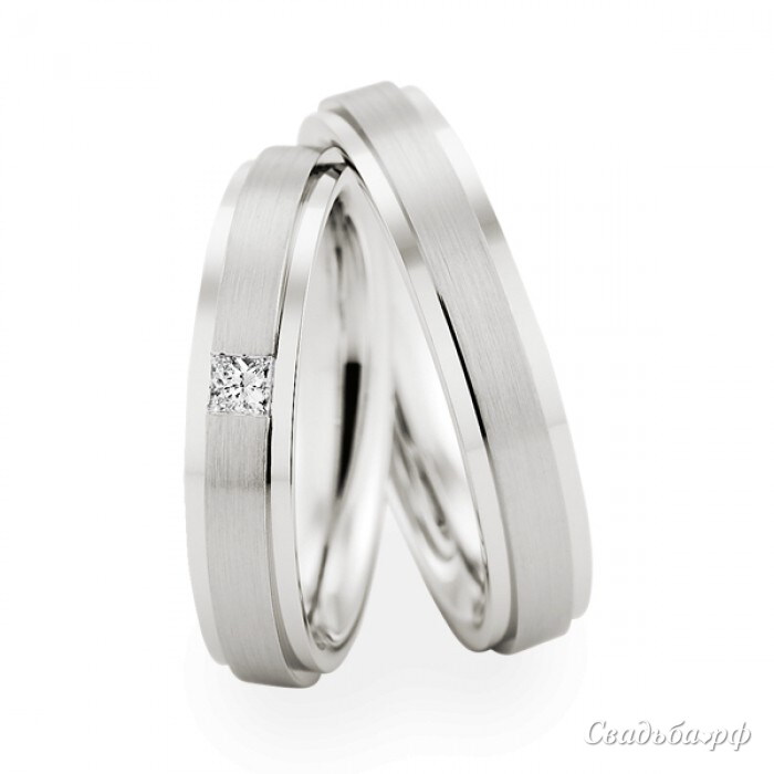 Парные обручальные кольца от лучших ювелиров России придутся по душе самым стильным и требовательным молодожёнам. Изящные ободки из белого золота дополнены продольными матовыми вставками посередине. Сверкающие края придают изделиям особый шик. Женская модель украшена чистейшим бриллиантом. Кольца отлично сочетаются друг с другом.