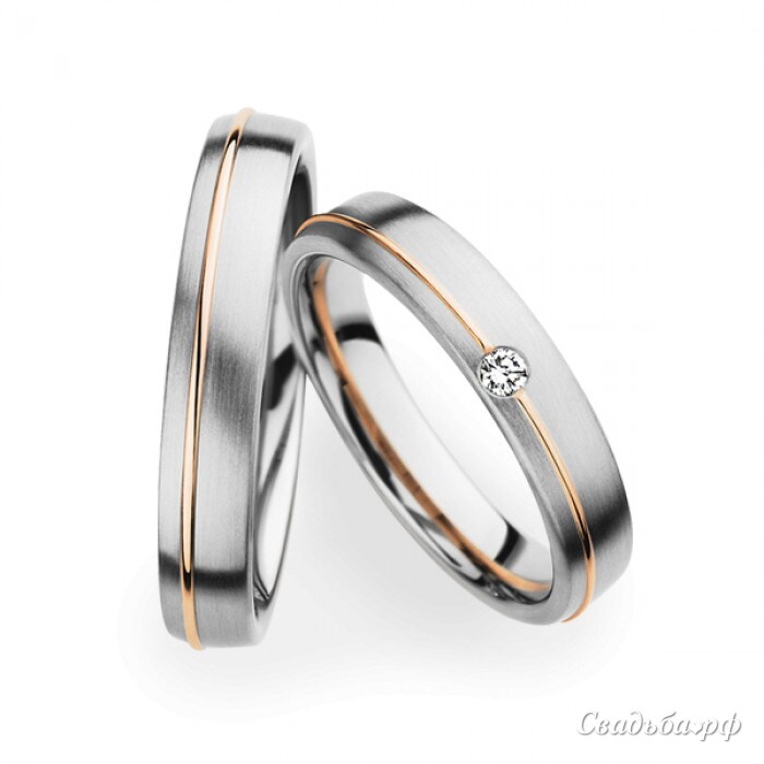 Изящные обручальные кольца отечественного производства станут эффектным штрихом Вашего бессмертного союза с любимым человеком. Колечки выполнены из белого золота и дополнены тонкой продольной полосой жёлтого золота. Женская модель украшена сверкающим бриллиантом безупречной огранки. Колечки отлично сочетаются друг с другом.