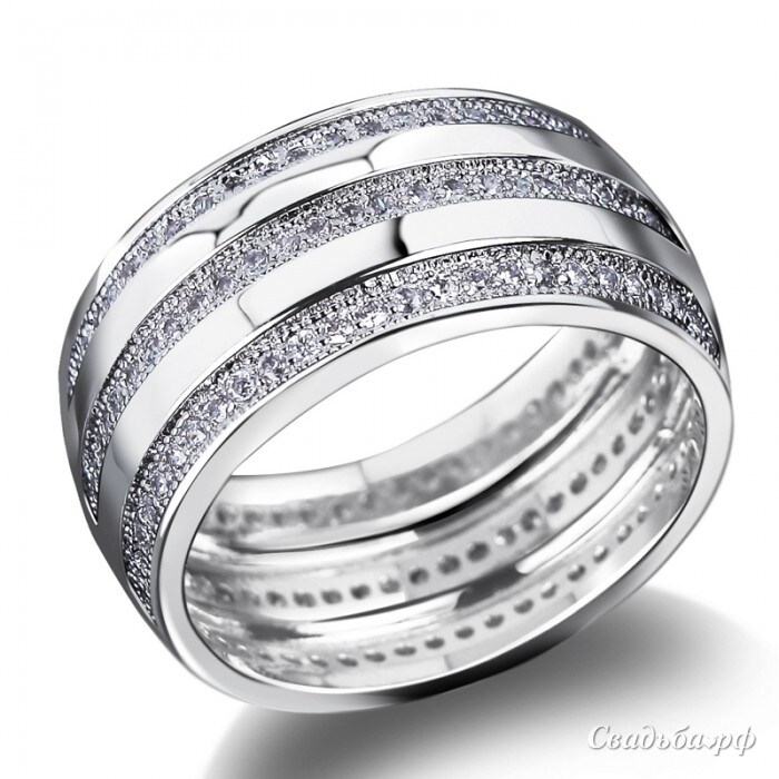 Поистине королевское обручальное кольцо представлено лучшими отечественными ювелирами. Массивный ободок из белого металла украшен продольными дорожками чистейших бриллиантов. Колечко буквально ослепляет блеском этих драгоценных камней. С таким роскошным украшением Вы всегда будете в центре внимания. Изделие не потускнеет и не потемнеет с годами.