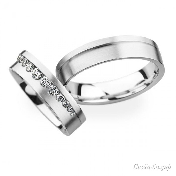 Парные обручальные кольца из белого золота – выбор современных молодожёнов. Эти колечки отличаются безупречными формами и высоким качеством исполнения. Один краешек ободка чуть более выпуклый, чем второй. Женское колечко декорировано чистейшими бриллиантами. С такими украшениями Вы всегда будете помнить о дне рождения Вашей семьи.