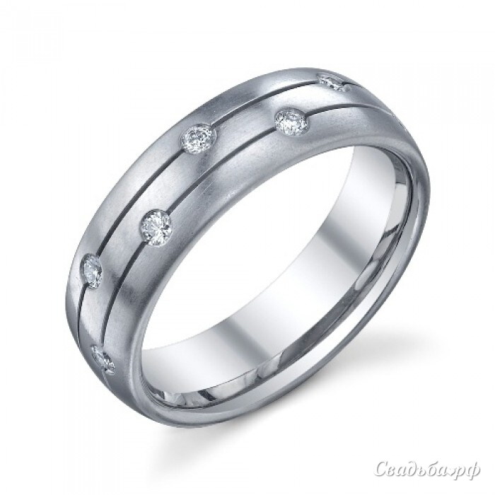 Стильное обручальное колечко от лучших ювелиров России выполнено из белого золота высочайшего качества. Широкий ободок с двумя продольными выемками дополнен сверкающими бриллиантами безупречной огранки, расположившимися в этих самых желобках. Украшение смотрится эффектно и современно. Модель комфортно сидит на пальчике и не царапает кожу.
