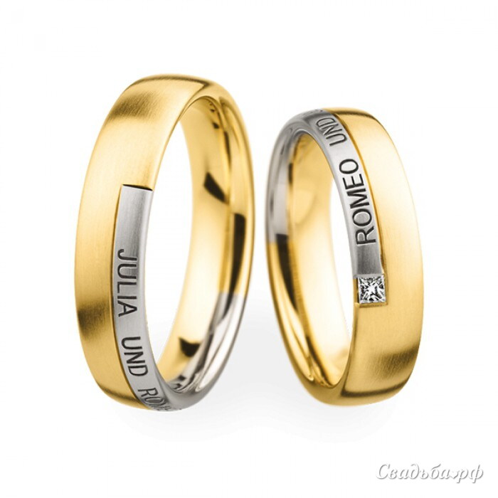 Оригинальные обручальные кольца для Него и для Ней выполнены из жёлтого золота и отличаются классическими формами, современным дизайном. Широкие ободки традиционной формы дополнены вставкой из белого золота, украшенной гравировкой. Женское колечко с бриллиантом буквально ослепляет своим чистым блеском. Стильные украшения для Вас!