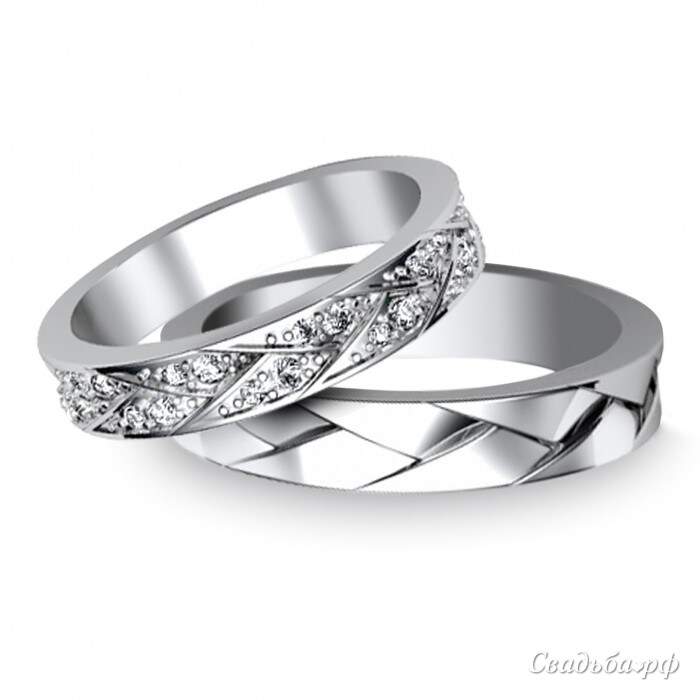 Элегантные обручальные кольца разработаны лучшими ювелирами России для самого важного дня в жизни влюбленных. Ободки из белого золота могут похвастаться оригинальным рельефом. Женская модель усыпана сверкающими бриллиантами чистейшей огранки. Эти парные кольца изготавливаются на заказ и могут быть изменены по желанию своих будущих владельцев.