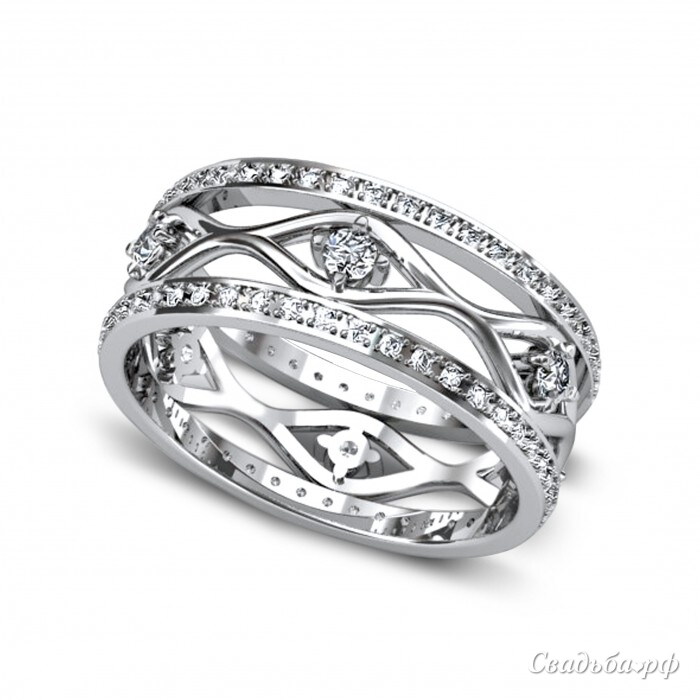 Королевское обручальное кольцо выполнено искусными ювелирами России. Широкий ободок может похвастаться затейливым переплетением драгоценных нитей и сверкающих бриллиантов. Изделие понравится даже самым требовательным ценителям качественных украшений. Кольцо может быть выполнено из желтого и белого золота, а также изменено по желанию заказчика.