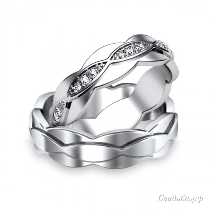 Оригинальные парные кольца с ажурными краями ободков смотрятся стильно и нежно. Мужская сверкающая модель дополнена рельефной вставкой посередине, женское кольцо декорировано чистейшими бриллиантами. Эти кольца от лучших ювелиров России могут быть выполнены из желтого и белого золота, а также изменены по желанию заказчика.
