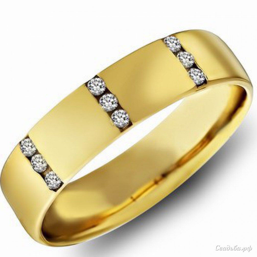 Обручальные кольца с 9 бриллиантами желтое золото Париж можно заказать в белом, розовом или желтом золоте.