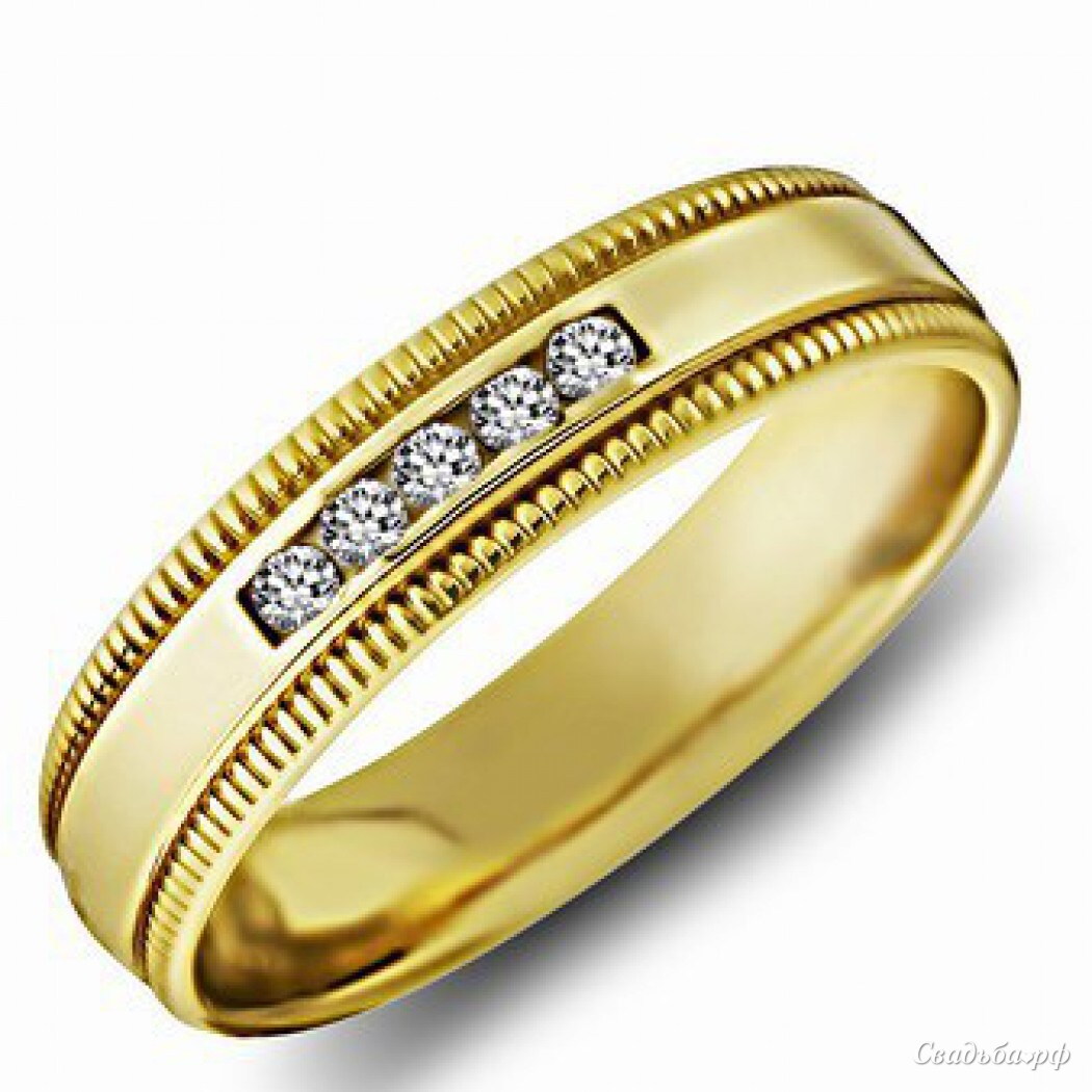 Обручальные кольца с бриллиантами желтое золото Ваниль 5 мм - элегантные обручальные кольца с 5 бриллиантами.