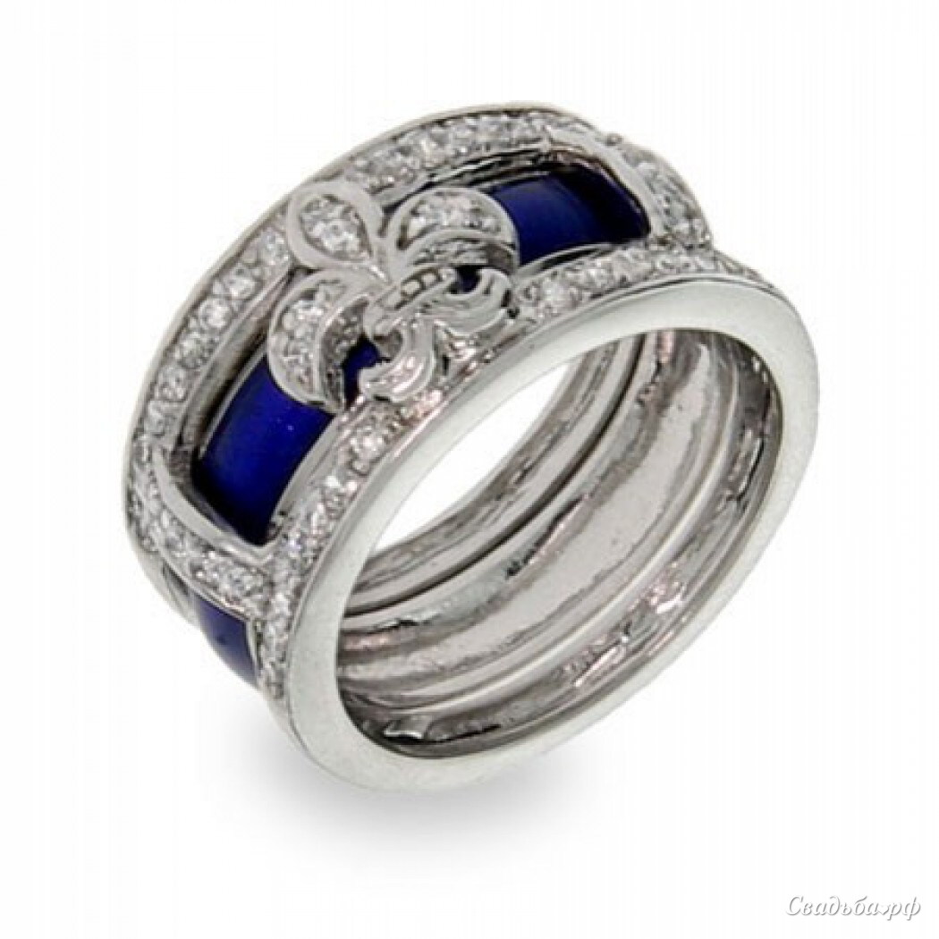 Обручальное кольцо из белого золота с эмалью и бриллиантами. Возможно исполнение из золота других цветов и с различными драгоценными вставками.