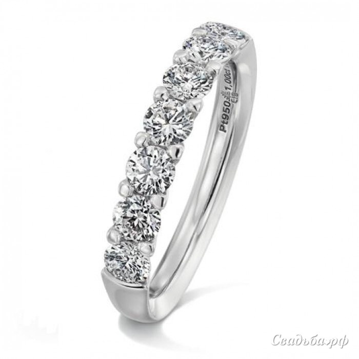 Мастерски выполненное кольцо из белого золота с бриллиантами. Полоса из крупных камней придает кольцу торжественный вид. Такое изделие привлечет любого своим ослепительным блеском, а вас будет радовать не только красотой, но и безупречным качеством. Внутренняя поверхность выпуклая, округлой формы, что позволяет ему комфортно сидеть на руке.