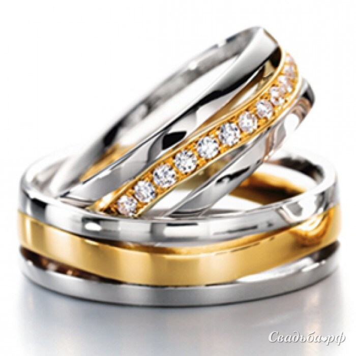 Комбинированные обручальные кольца с объёмной продольной вставкой посередине ободка никого не оставят равнодушным. Модель можно приобрести на заказ, изменив по желанию. Разные пробы металла: 585, 750. Цветовая гамма: белый, желтый, красный. Мы украсим кольца бриллиантами, изумрудами, сапфирами, рубинами и другими камнями на Ваш выбор.