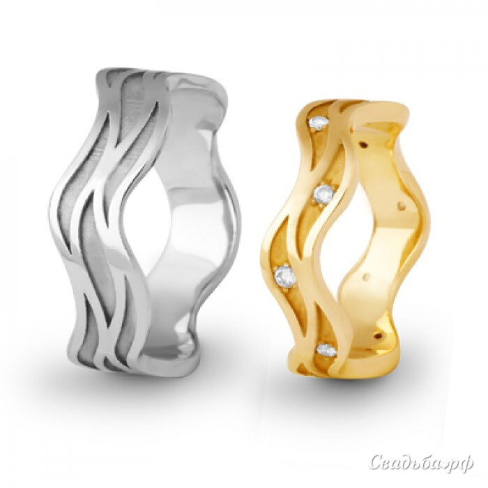 Необычные обручальные кольца с волнистыми рельефными ободками станут ярким штрихом вашего образа. Модель можно приобрести на заказ, изменив по желанию. Разные пробы драгоценного металла: 585, 750. Широкая цветовая гамма: белый, желтый, красный. Мы украсим кольца бриллиантами, изумрудами, сапфирами, рубинами и другими камнями на Ваш выбор.