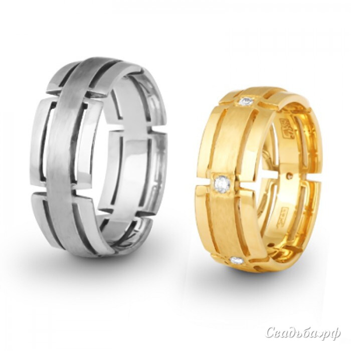 Необычные обручальные кольца с широкими ободками, декорированными изящными выемками по краям. Эту модель можно приобрести на заказ, изменив по желанию. Возможные пробы золота: 585, 750. Цветовая гамма: белый, желтый, красный. Мы украсим кольцо бриллиантами, изумрудами, сапфирами, рубинами и другими камнями на выбор.