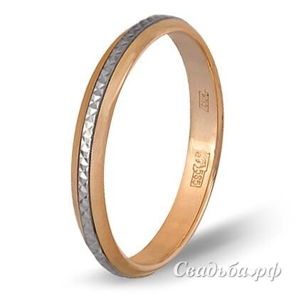 Кольцо из красного золота с рельефной вставкой из белого золота. 585 проба.
