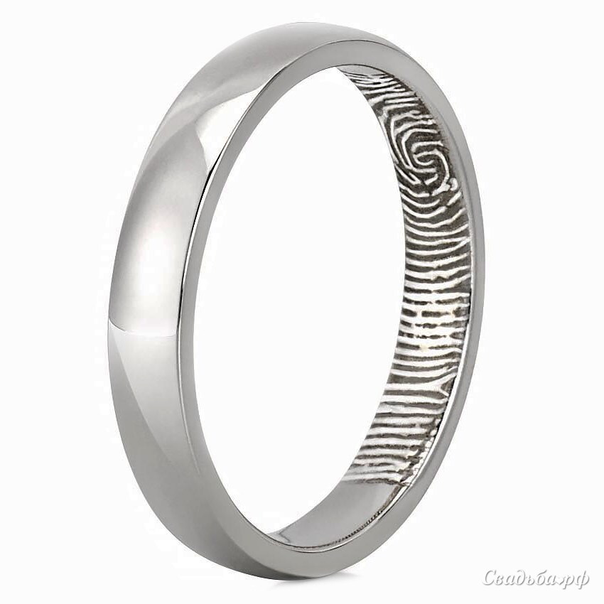 Обручальное кольцо из белого золото с отпечатком пальца. 585 проба.