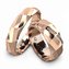 Эти парные обручальные кольца поражают своим дизайном и красотой. Украшения представлены в красном золоте и обладают очень необычной фигурной огранкой по всей своей поверхности. Мужское кольцо со внутренней стороны инкрустировано бриллиантом. Женское кольцо украшено бриллиантами с внутренней и со внешней стороны.