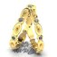 Обручальные кольца необычной формы, выполненные из золота желтого цвета. Кольца состоят из овальных фрагментов, которые разделяются небольшими бриллиантами. Эти украшения смотрятся очень изящно и празднично.