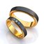 Парные обручальные украшения из красного золота, внешняя сторона покрыта черным родием. В мужском варианте кольца отсутствуют драгоценные камни и дополнительные декоративные элементы. Женский вариант кольца имеет идентичный дизайн, только в центре инкрустировано тремя бриллиантами.