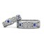 Фигурные парные обручальные кольца, в основу которых легли кельтские орнаменты. По всей окружности кольца украшают вставки из сапфиров: 5 круглых сапфиров на женском варианте и 5 квадратных на мужском. Цена указана за женское кольцо весом в 5,5 грамма.
