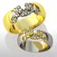 Необычный дизайн этих парных обручальных колец мгновенно бросается в глаза. В центре украшения пара купидончиков с держит бриллиантовое облачко, и ещё по одному "облаку" над крылом у каждого. Купидоны сделаны из контрастного золота, если женское кольцо из белого золота, то фигурные ангелы из желтого, в мужском - наоборот.