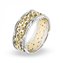 Комбинированное обручальное кольцо с чистейшими бриллиантами выбирают самые стильные и креативные молодожёны, знающие толк в качественных ювелирных украшениях. Широкий ободок с золотистыми узорами и серебристыми краями буквально ослепляет своим блеском. Украшение эффектно смотрится на пальчике и сочетается с другими аксессуарами.