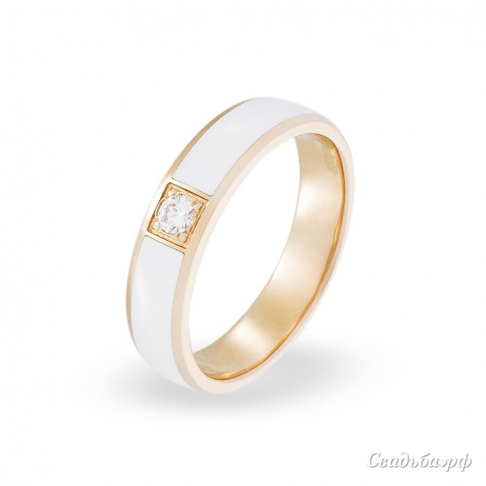 Оригинальное обручальное кольцо отечественного производства сочетает в себе классику и модерн. Традиционная форма ободка гармонично сочетается с современным дизайном. Жёлтое золото сочетается с белой продольной вставкой. Кольцо украшено чистейшим бриллиантом безупречной огранки. Изделие будет комфортно сидеть на пальчике и не потускнеет с годами.