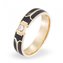 Эффектное обручальное кольцо из жёлтого золота представлено ведущими ювелирами России. Широкий ободок украшен чёрными вставками. Крупный бриллиант безупречной огранки уютно разместился в квадратной оправе. Украшение смотрится элегантно и стильно – именно то, что ценят современные молодожёны. Колечко не потускнеет с годами.
