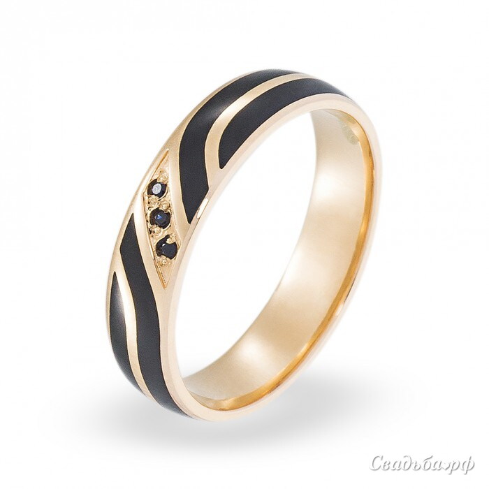 Эффектное обручальное кольцо с чёрными вставками выполнено из жёлтого золота высочайшего качества. Три тёмных бриллианта поражают своим нестандартным обликом и изысканным блеском. Ободок классической формы комфортно сидит на пальце, а современный дизайн украшения привлечёт всё внимание окружающих. С таким колечком Вы будете на высоте!