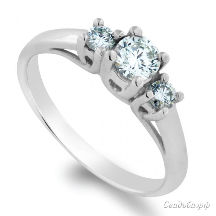 Роскошное обручальное кольцо представлено лучшими ювелирами России. Изящный ободок из белого золота дополнен тремя крупными бриллиантами, каждый из которых искусно закреплён в тонкой оправе. Колечко комфортно сидит на пальце и сочетается с другими украшениями. Это ювелирное изделие может стать настоящей фамильной реликвией Вашей семьи.