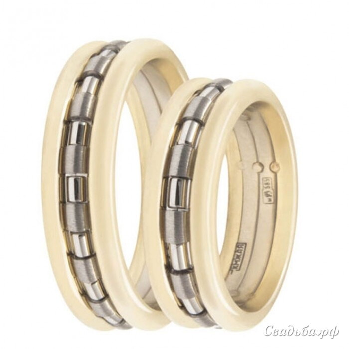 Оригинальные парные кольца для жениха и невесты выполнены лучшими ювелирами Италии. Кольца отличаются продуманным до мелочей дизайном и высочайшим качеством исполнения. Изящные ободки из жёлтого золота дополнены необычными вставками из другого вида драгоценного металла. Изделия смотрятся эффектно и неповторимо. Роскошный символ Вашей любви!
