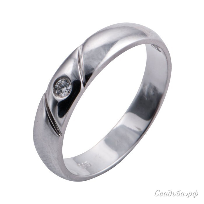 Элегантное обручальное кольцо из белого золота 585 пробы с бриллиантом. Главной изюминкой изысканного и романтичного изделия является круглый бриллиант, расположенный по центру. Два косых желобка расположенные по обе стороны от него делают дизайн украшения оригинальным и запоминающимся. Носить это изделие будет комфортно и удобно, внутренняя поверхность выпуклой формы обеспечит его правильную посадку и предотвратит натирание кожи. Роскошное и в то же время изящное обручальное кольцо прекрасно подойдет девушке с богатым внутренним миром и тонким вкусом.