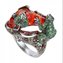 Потрясающее неординарное обручальное кольцо из белого золота. Это кольцо прдназначено для людей с яркой жизненной позицией и смелым взглядом на жизнь. Крупный красный камень окружен множеством мелких камней зеленого, синего и красного цветов. В качестве украшения декоративная лягушка и лист. Подарите себе удовольствие отличаться!