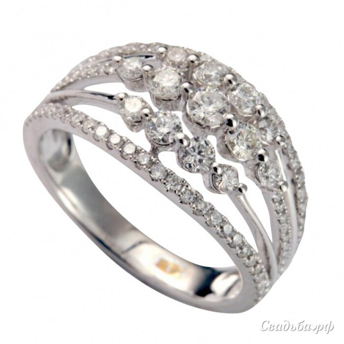 Роскошное обручальное кольцо из белого золота с бриллиантами. Оригинальный дизайн изделия не оставит никого равнодушным: тонкие полосы белой платины эффектно инструктированы разными по размеру, переливающимися бриллиантами. Массивное на вид украшение носить будет легко и приятно, благодаря выпуклой внутренней поверхности, выполненной по технологии comfort fit. Это обручальное кольцо, станет прекрасным символом вечной любви, которой не страшны никакие преграды.