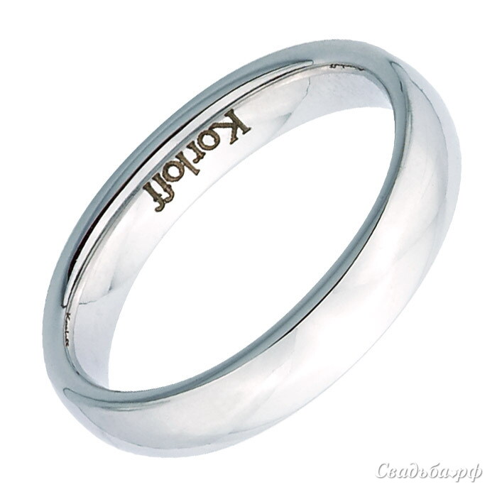 Классическое обручальное кольцо из благородного белого золота. Блики света очень интересно отражаются от идеально гладкой поверхности кольца и заставляют всех окружающих обратить внимание на это значимое украшение. Внутренняя поверхность модели украшена логотипом знаменитого французского Ювелирного Дома Korloff. Стоимость зависит от размера кольца.