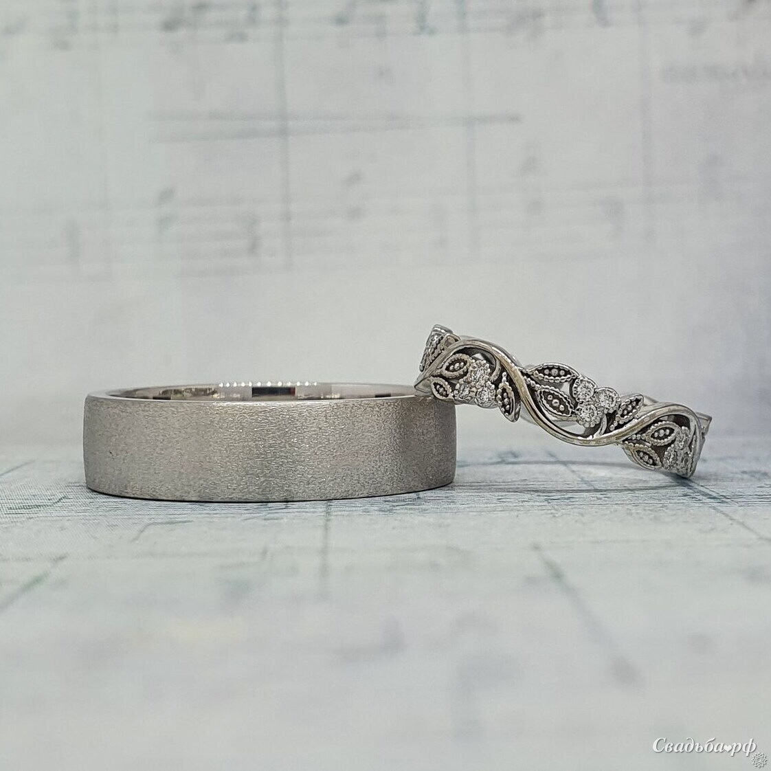 Обручальные кольца с бриллиантами. Листочки. Белое золото. На заказ