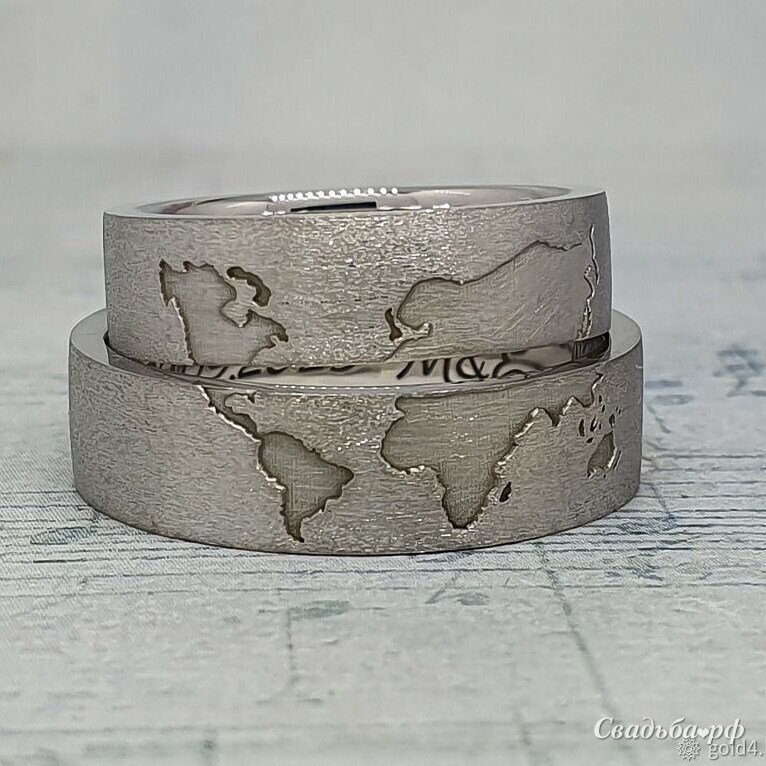 Матовые обручальные кольца Весь мир, парные обручальные кольца