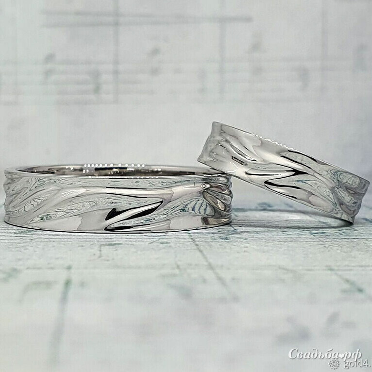 Обручальные кольца из белого золота Волна, парные кольца на заказ