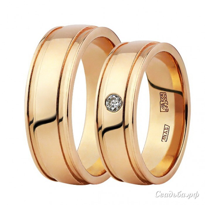 Восхитительные парные обручальные кольца из красного золота 585 пробы, вариант для нее декорирован бриллиантом. К дизайну парных изделий невозможно придраться: три плавные линии, одна из которых немного выступает над остальными, обеспечивают целостное восприятие и вызывают восхищение. При изготовлении внутренней стороны украшения была применена технология удобной посадки, а значит, процесс носки не доставит никакого дискомфорта. Эти парные обручальные кольца являют собой образец истинной роскоши, воплощенной в ювелирных изделиях.