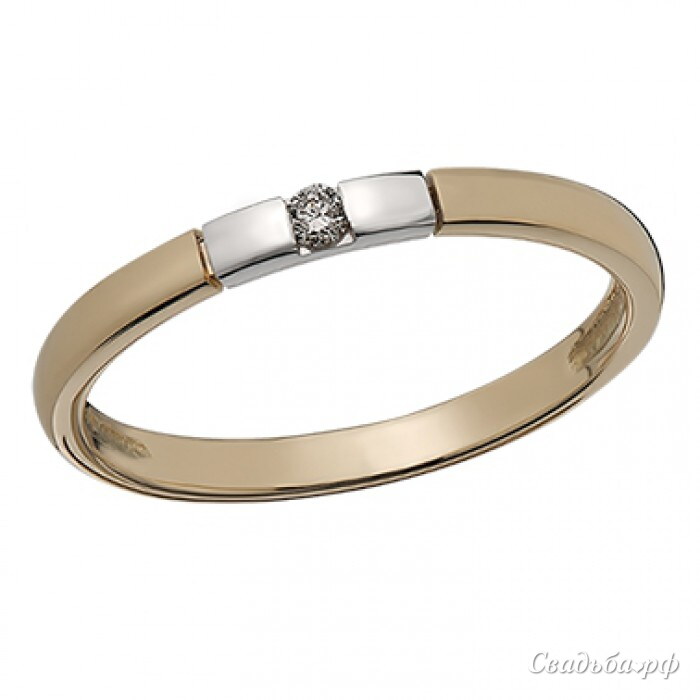 Эффектное обручальное колечко от лучших отечественных ювелиров станет отличным украшением самого прекрасного пальчика в мире. Изящный ободок из жёлтого золота дополнен вставкой белого драгоценного металла. Чистейший бриллиант буквально ослепляет своим блеском.
