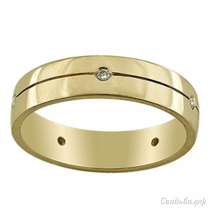 Изысканное кольцо от ведущих ювелиров России никого не оставит равнодушным. Широкий ободок выполнен из сверкающего красного золота высшей пробы. Модель дополнена продольной выемкой. Чистейшие бриллианты безупречной огранки придают этому обручальному колечку неповторимый шарм. С таким украшением вы всегда будете на высоте.