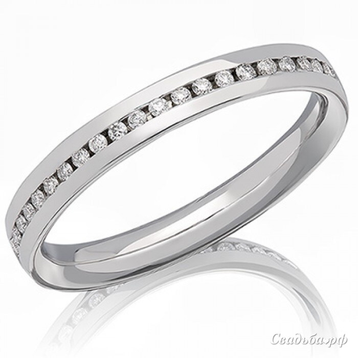 Обручальное кольцо от лучших отечественных ювелиров выполнено из белого золота высшей пробы. Изделие декорировано целой россыпью драгоценных камней в рельсовой оправе. Представленная цена актуальна для кольца, выполненного в 17,5 размере и с 45 бриллиантами общим весом 0,39к. При уменьшении размера кольца стоимость уменьшится.
